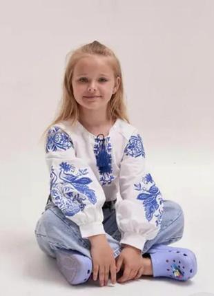 Маломерит на размер! Новая вышиванка для девочки. В наличии р.146 и 158,ориентироваться на 140/10 лет и 152/12 лет (см. замеры).. Производитель Украина, Merezhka. 100% бавовна. Машинная вышивка. Оригинальная модель рукавчика-расширенный, фонарик. На манжеті кнопка. р.146: длина по спинке сзади 51, спереди короче на 6см, ширина 43, рукав от горла 56, рукав от подмышки 44. р.158: длина по спинке сзади 57, спереди короче на 6см, ширина 46, рукав от горла 63-64, рукав от подмышки 51.