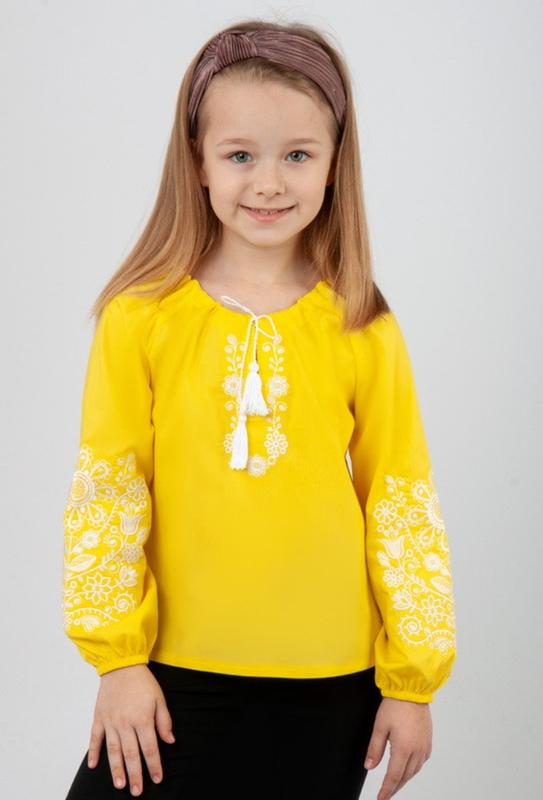 Милая вышиванка для девочек с пышными рукавами, выполнена из высококачественного полотна "Поликоттон" - износостойкий, прочный материал, который долго прослужит, не теряя своего первоначального вида. В данной ткани гигроскопичность и воздухопроницаемость хлопковых волокон дополнена практичным и прочным полиэстером. Изюминкой данной модели является интересный вышитый узор и объемные рукава снизу, собранные на резинке. Вышиванка отлично комбинируется с юбкой или брюками и станет дополнением любого праздничного образа. Полотно: поликоттон Состав: 75% хлопок, 25% полиэстер. Вышитый орнамент: машинная вышивка Советы по уходу: стирать при температуре не более 30°C. Допускается стирка в режиме "ручная" или "деликатная", вышивку гладить только по изнаночной стороне.