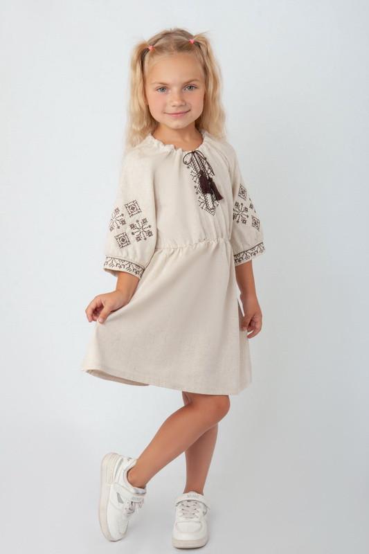 Красивое комфортное платье для девочки на каждый день. Платье пошито из качественного, мягкого полотна "Льон". Рукав "Три четверти", также платье собрано в талии эластичной тесьмой, что делает эту модель детского платья универсальной и удобной Полотно: льон Состав: 55% лен, 45% вискоза. ,,2762