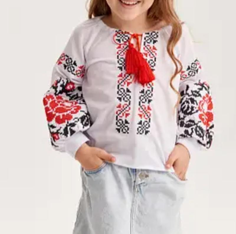 Размеры от 116 до 158 Ткань - поплин Состав ткани - 65% хлопок, 35% полиэстер Вышивка машинная, французский узелок Наличие размеров уточняйте!