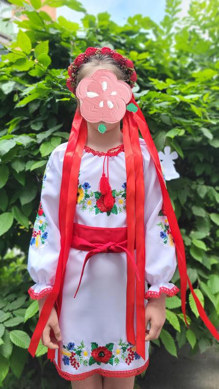 Гарна сукня-вишиванка на дівчину, горловина регулюється, манжети на резинці, крій прямий. В комплекті юбка і пояс Довжина по спині 70 см Ширина 37 Довжина рукава 55 см Юбка вільно, різної довжини Ширина резинки в ростягнутом виді 37 Довжина спереді 19 см, позаду 56