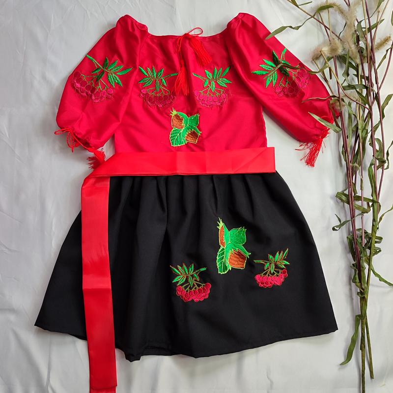 Вышитое платье детское ◽Цена 600 грн ◽ Тканина: габардин, штучний шовк ◽Цвет: красный верх, черный низ ◽Размер: 110-116 (5-6 лет) ◽Замеры: ПОГ 29 Длина 64,5 Длина рукава 26,5