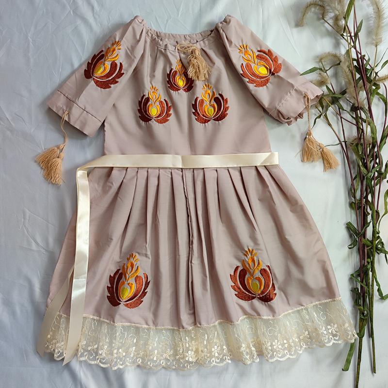 Вышитое платье детское ◽Цена 700 грн ◽ Ткань: рубашечная (поплин) ◽Цвет: бежевый ◽Размер: 122-128 (7-8 лет) ◽Замеры: ПОГ 34,5 Длина 71,5 Длина рукава 25,5