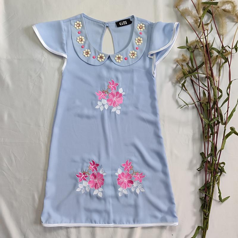 Вышитое платье детское воротник вышитый полубусинками, перед нитками ◽Цена 280 грн ◽ Тканина: шифон ◽Цвет: свет голубой ◽Размер: 110-116 (5-6 лет) ◽Замеры: ПОГ 30,5 Длина 64,5 Длина рукава 9