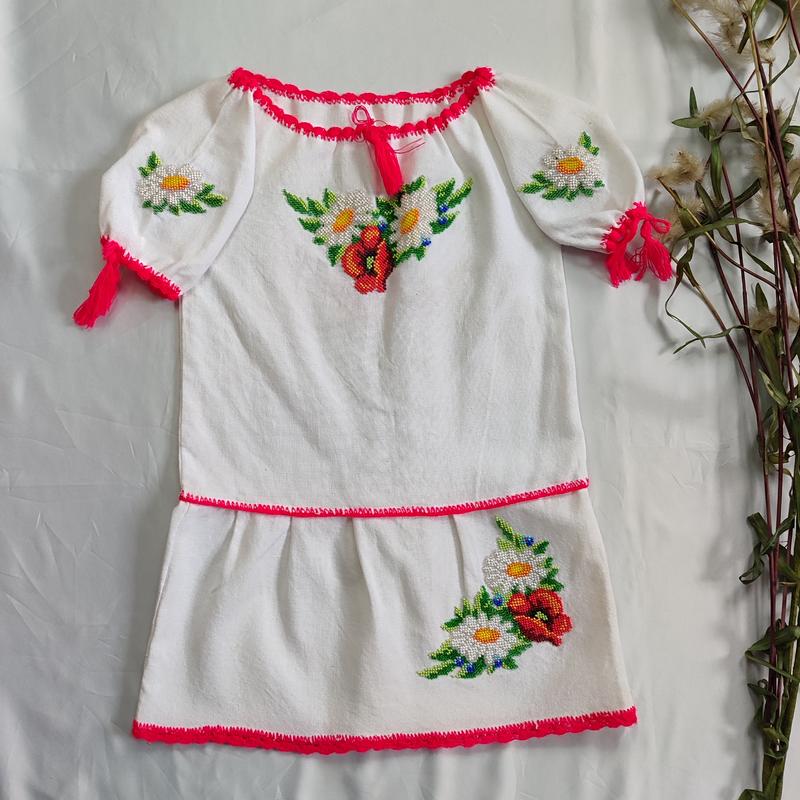 Вышитое бисером платье детское ◽Цена 355 грн ◽ Тканина: домоткане полотно (льон) ◽Цвет: белый ◽Размер: 110-116 (5-6 лет) ◽Замеры: ПОГ 33 Длина 56 Длина рукава 18,5