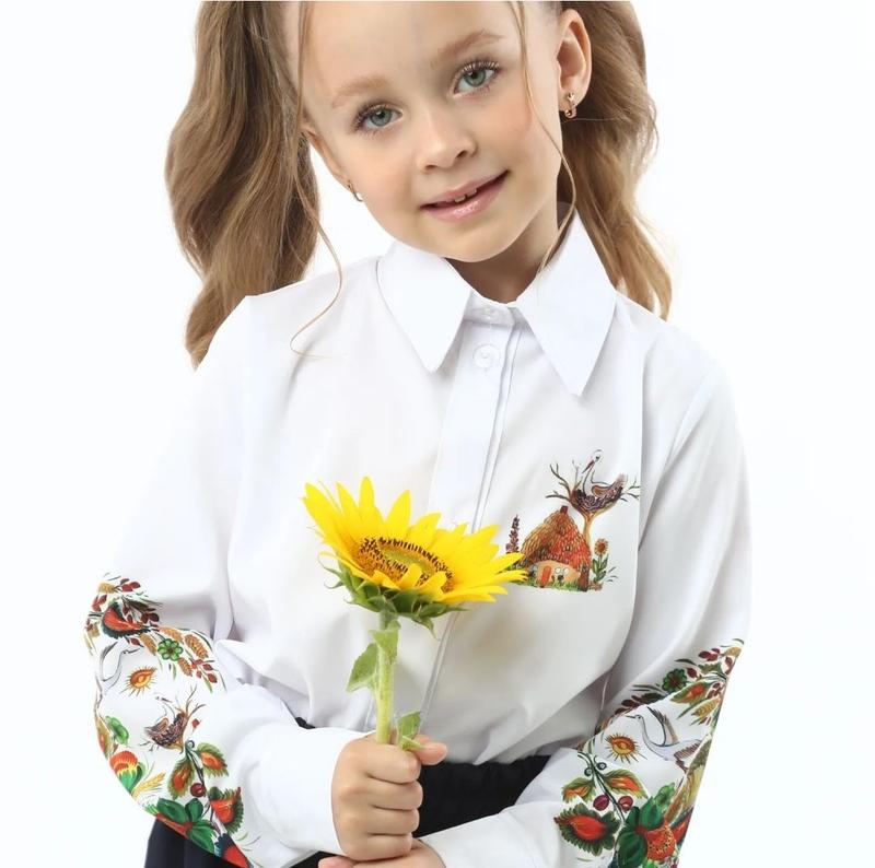 Готовимся в школу стильно) Эта замечательная блузочка с патриотическим принтом станет украшением Вашей принцессы-школьницы💛🩵 Состав ткани: 50% хлопок, 50% эластан, очень качественная и приятная к телу. Рисунок: сублимационная печать, стилизованный под вышивку. Не стирается и не теряет цвет. В наличии много красивых принтов. Юбку можно приобрести также (черный и темно-синий цвета) ➡️122 рост: ОГ - 76 см. Рукав - 46 см. Длина по спине - 48 см. Плечи - 28 см. ➡️128 рост: ОГ - 80 см. Рукав - 48 см. Длина по спине - 51 см. Плечи - 30 см. ➡️134 рост: ОГ - 82 см. Рукав - 50 см. Длина по спине - 52 см. Плечи - 31 см. ➡️140 рост: ОГ - 86 см. Рукав - 52 см. Длина по спине- 54 см. Плечи - 32 см. ➡️146 рост: ОГ - 88 см. Рукав - 53 см. Длина по спине- 56 см. Плечи - 34 см. ➡️152 рост: ОГ - 92 см. Рукав - 54 см. Длина по спине- 58 см. Плечи - 36 см.