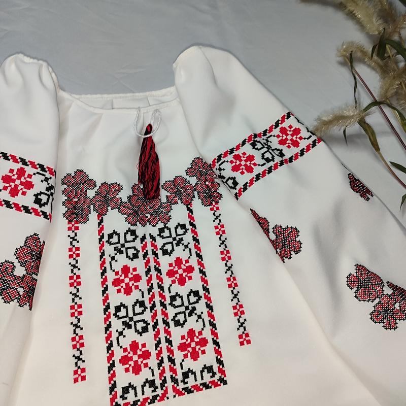 Вышитая блузка для девочки ◽Цена 620 грн ◽ Тканина: габардин ◽Цвет: белый ◽Размер: 134-140 (9-10 лет) ◽Замеры: ПОГ 41,5 Длина 64 Длина рукава 54