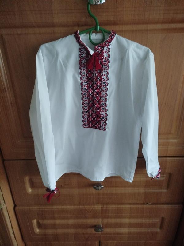 Вышиванка на возраст 4-5 лет, но надо ориентироваться на замеры, в очень хорошем состоянии. Замеры: длина 45, длина рукава от плечика 38,5, пог 37, плечи 32 см.