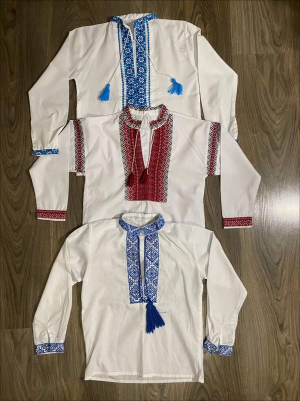 Вишиванки Очень красивые вышиванки, синих и красного цветов Размер 6-7 лет В хорошем состоянии, без пятен и царапин Очень хорошая цена, пишите!