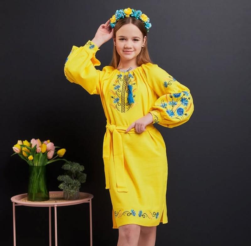 Вышитое платье вышиванка для девочки платье вышитое васильками желто-голубое желтое платье...