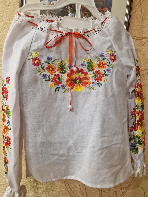 Льняная вышиванка с вышитой юбочкой с необычными рукавами. Надевали несколько раз. Замеры: рукав: 48см, длина изделия: 45см. Юбка: длина 37см, полуобхват талии 22, тянется до 36.