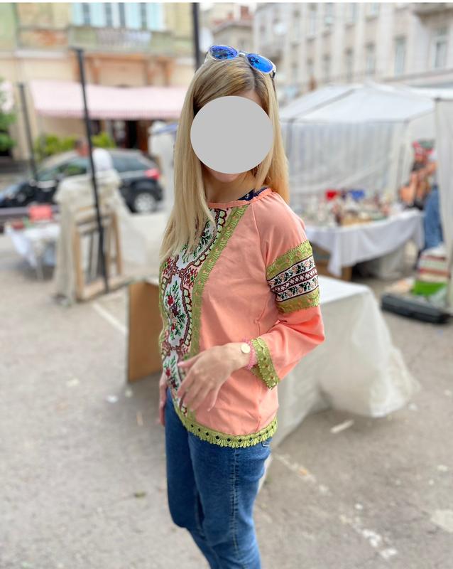 Чудова персикова вишиванка. Ручная работа. Купила во Львове на рынке вернисаж. Одетая пару раз. У меня размер S/М. Замеры по запросу