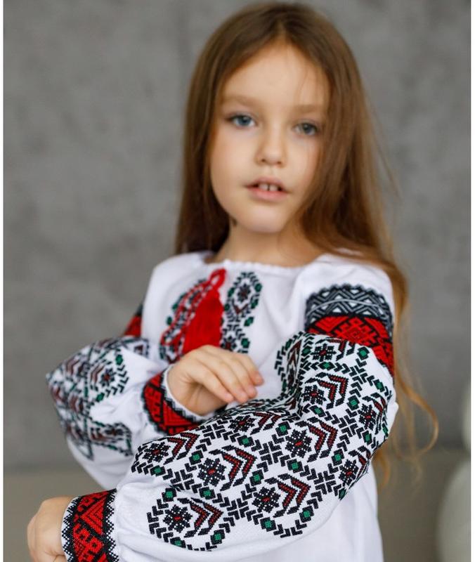 Вышиванка для девочки в наличии и под заказ. Срок выполнения заказа, пожалуйста, уточайте до приобретения через "купить". Ткань белая. Вышивка: машинная Размеры: 116-158 От 152 р +100 грн