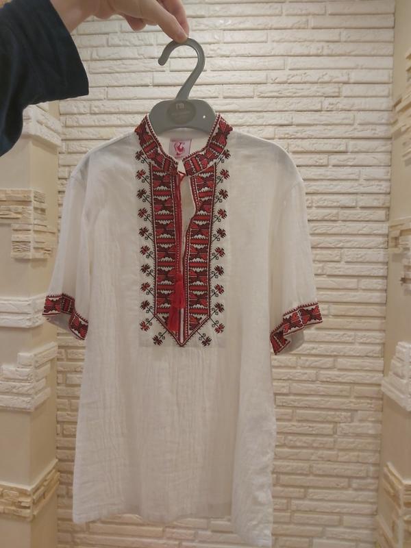 Вишиванка на хлопчика ТМ " Слобожанка" має 3 гудзика Довжина-54 см Пог -38 см Вишиванка дуже гарна , приємна до тіла, зроблена із тканини "жатка" (після прання можна не прасувати)
