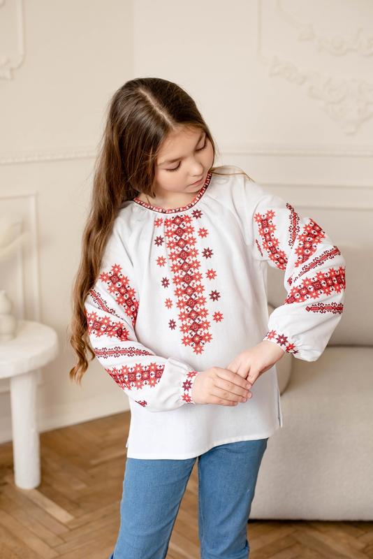 Пересылка данной модели осуществляется вкрпошной, новой по почте и только после 100% оплаты на карту приватбанка в течение 1-3 рабочих дней. Более 2241 положительных отзывов за 5 лет верной работы говорят о том, что нам можно доверять!!!!!!!!!!! С накладной платой не работаем. Эта вышиванка сочетает в себе нежность и глубокий символизм украинской вышивки. Выполнена из натурального полотна, она обеспечивает комфорт и легкость в носке. Орнамент состоит из геометрических узоров, расположенных вдоль груди и рукавов, которые символизируют гармонию и защиту. Свободный крой и сборки у горловины добавляют удобства и стиля, а рукава на манжетах создают элегантный силуэт. Эта рубашка станет отличным выбором как для торжественных событий, так и для повседневной носки, подчеркивая красоту традиций в современном исполнении. Купить вышиванку для девочки с вышивкой вы можете на этой странице, поместив товар в "корзинку". Больше моделей детских платьев в разделе: вышиванки на девочку. Также у нас на сайте вы можете купить атласные юбки, пояски и плахты для девочек. ТКАНЬ: 100% хлопок (домотка) гарантирует, что тело ребенка будет дышать в самую жаркую погоду. РИСТ : 110,116,122,128,134 см Цена : 825 грн 140,146,152,158 см Цена : 940 грн 164,170см Цена: 1000 грн