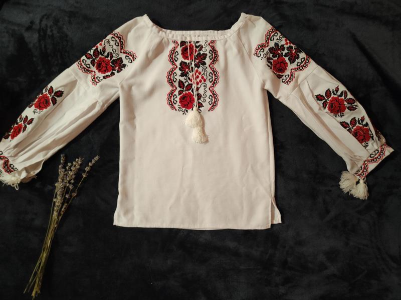 Вышиванка ручной работы вышивка, натуральная ткань. Стан Отличный. Возраст от 7 до 11 лет, в зависимости от комплекции ребенка, лучше ориентироваться по замерам. Замеры: Плечи 37,5 см. ( Есть шнурок, с помощью которого можно подстроить под ребенка). ПОГ 38 см. Рукав 50 см. Длина 54 см.