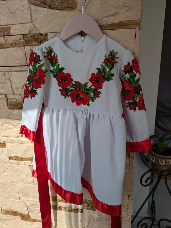 Платье, с вышивкой бисером. вышиванка. от 1 года