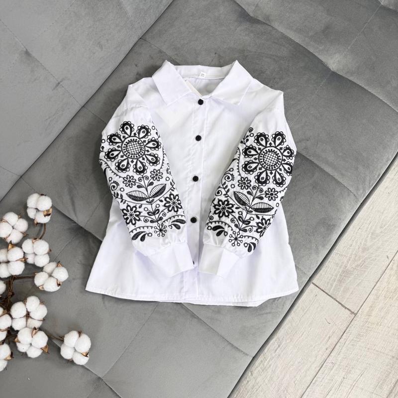 Тканина бавовна. Машинная вышивка, очень красивая и качественная. Манжеты на пуговице.Застежка на пуговицах Замеры: рукав от воротника 122 - длин. 45 / полуобхват 43 / Рук.48 128 - длин. 47 / полуобхват 45 / Рук.50 134 - длин. 50 / полуобхват 45 / Рук.53 140 - длин. 52 / полуобхват 46 / Рук.57