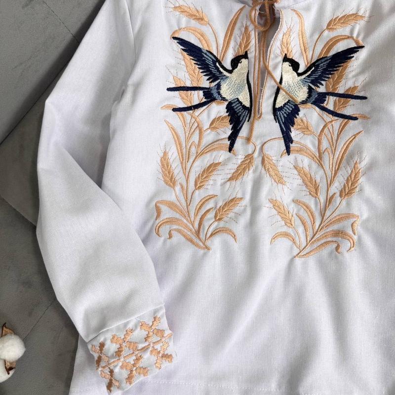 💕Вышиванка/Сорочка ласточки на мальчика. Тканина льон. Машинная вышивка, очень красивая и качественная. Манжети на ґудзику. На воротнике есть завязочка. 📐Замеры: 128 - длин. 48 / полуобхват 38 / Рук.45 134 - длин. 51 / полуобхват 40 / Рук.48 140 - длин. 53 / полуобхват 42 / Рук.49 146 - длин. 55 / полуобхват 43 /рук.51 🏷️650грн