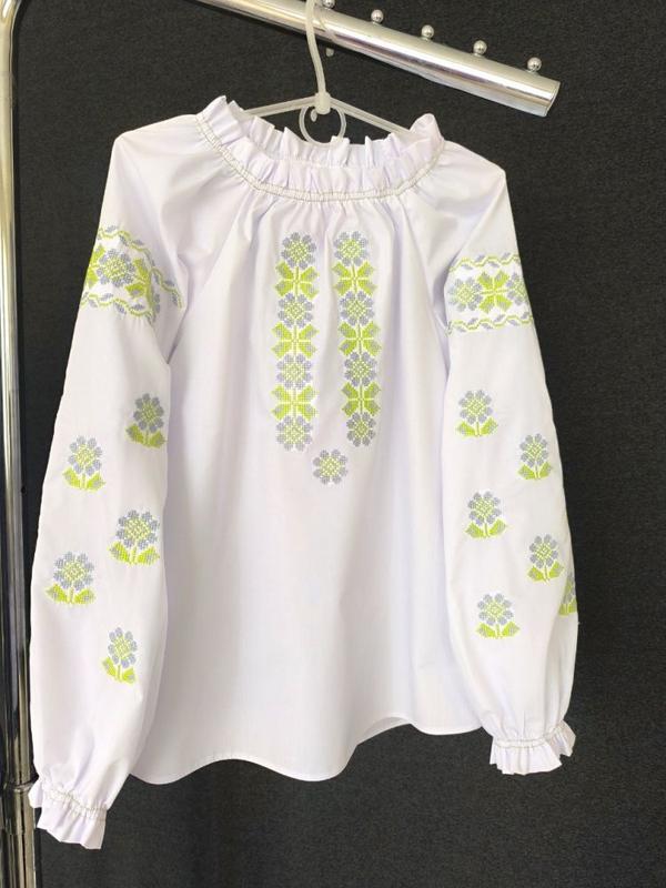 Вышиванка для девушек на рубашечной ткани 55% полиэстер, 45% хлопок Цвет вышивки- серо-салатовый Укрпошта/Нова пошта Производитель-Украина