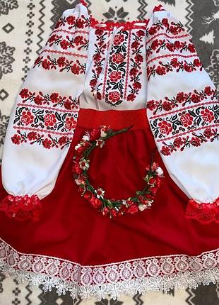 Вышиванка – символ здоровья, красоты, счастливой судьбы, родовой памяти, национальной гордости, наряду, честности, любви, праздничности; оберегает. Она символ украинца и Украины. Ткань габардин, на юбочке евросетка и кружево на юбочке, нарукавчиках, горловине. Машинная вышивка. замеры предоставляем