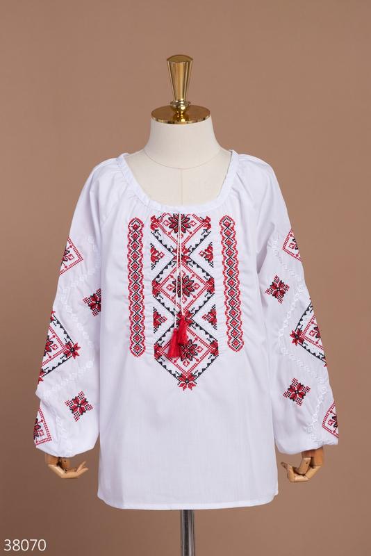 Вышиванка для девочек Цвет: белый Материал: поплин (хб + полиэстер), машинная вышивка Страна производитель: Украина Размерная сетка: 122-146 см Замеры: 122 см - рукав 49 см, ПО груди 38 см, длина 51 см. 128 см - рукав 52 см, ПО груди 39 см, длина 52 см. 134 см - рукав 55 см, ПО груди 41 см, длина 56 см. 140 см - рукав 56 см, ПО груди 42 см, длина 58 см. 146 см - рукав 58 см, ПО груди 43 см, длина 60 см.