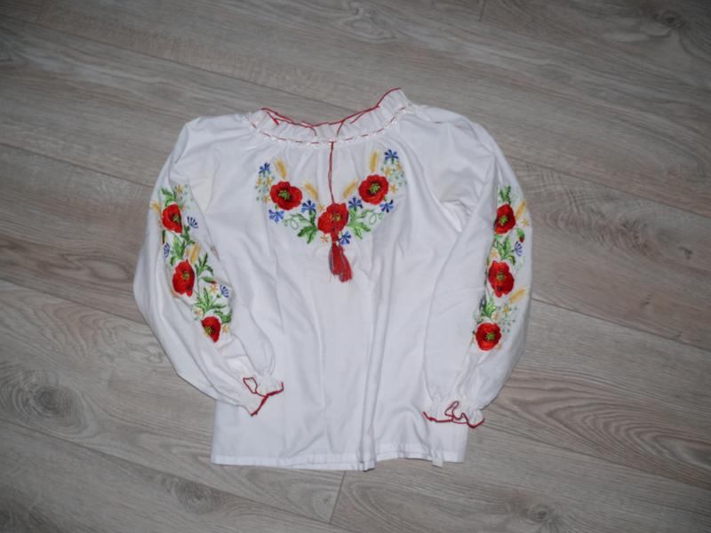хорошая вышиванка на девочку 8-10 лет длина 54см, ПОГ 44см рукав от горловины 57см качественная, красивая вышивка