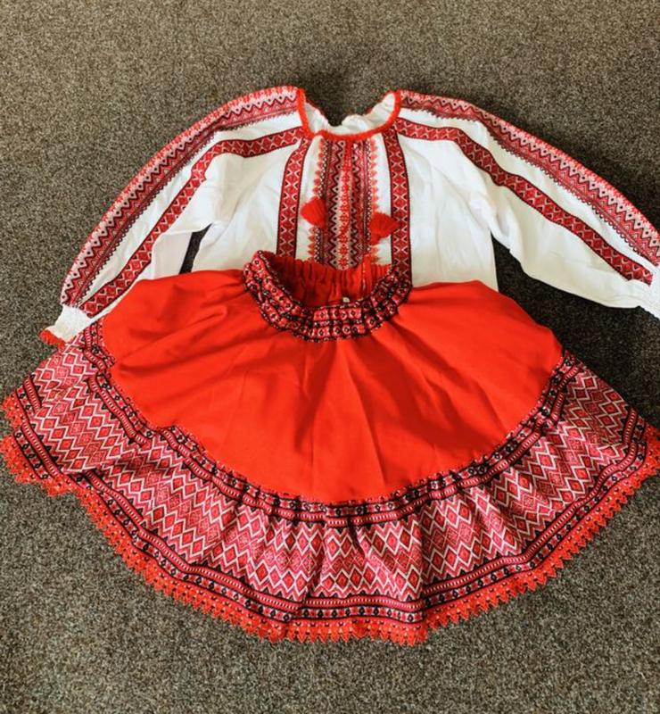 Ідеальний стан на дівчинку віночок в комплекті Довжина сорочки 60, рукав 64 (від горловини) Спідниця - довжина 40, пояс 25