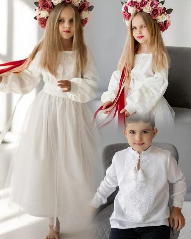 цвет -белый Ткань: габардин, евросетка. Натуральное кружево размер 110см, 116см, 122см, 128см, 134см, 140см, 146см, размер 152см. 158см (+100грr)❗ Вышиванка для мальчика. Домоткана тканина. Росты от 3 до 12 лет