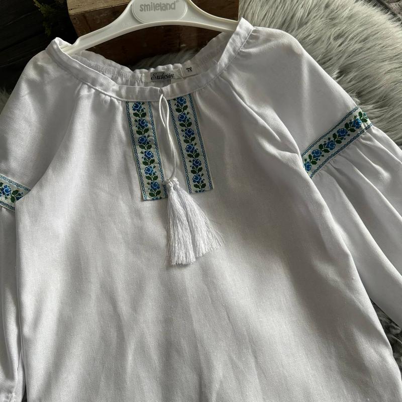 Вышиванка для девочек орнамент No 1 голубой НОВАЯ ЦЕНА 579 грн натуральная, дышащая ткань: лён ВЫМЕРЫ: р.134 длина/ширина/рукав от горла 55/39/53см р.140 длина/ширина/рукав от горла 57/40/54 см #вишиванки