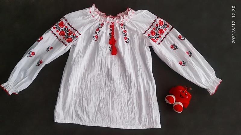 Качественная вышиванка для девочки Качество очень классное. Ткань натуральная, слегка жатая. Выглядит шикарно, в реале еще лучше! Длина-51 см, ширина под проймой-40,5 см, рукав от горловинки-51. Можно носить долго, сначала как с длинным рукавом, затем 3/4.