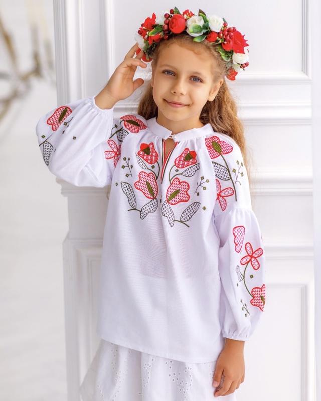 Сорочка вишиванка біла сучасна для дівчинки