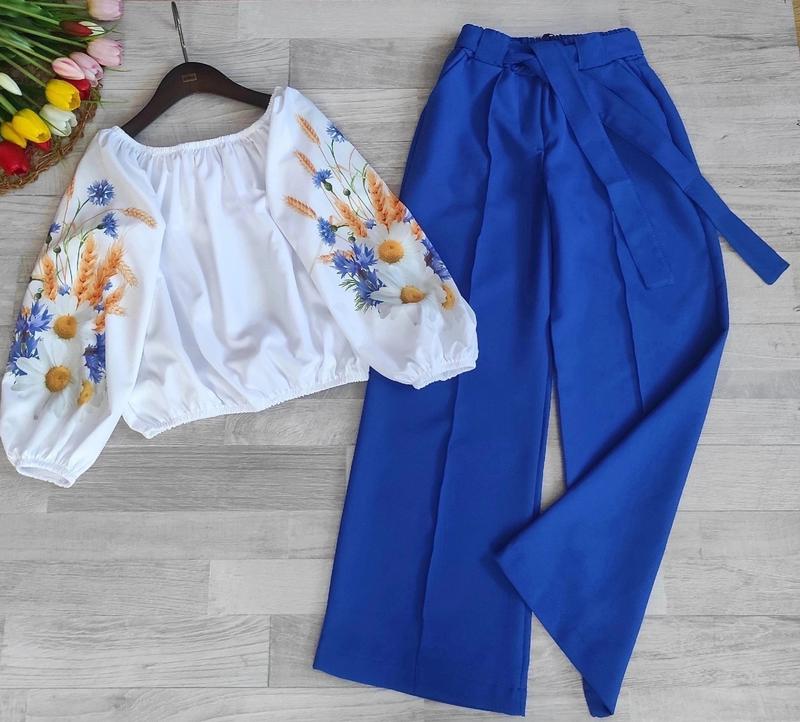 Яркая и стильная новиночка Блузка супер софт с цветочным принтом, линяет,не вытрескивает Брючки палаццо костюмка. есть карманы УДОБНАЯ КАЧЕСТВО ❤️РЕКОМЕНДУЮ! Цена 1080 грн замеры:блузка длин/рукав/пог/брюки длинна/шаг/пояс 134р-40/45/44/81/59/25 140р-43/47/45/84/63/26 146р-44/50/47/88/65/26 152р-45/52/49/92/67/27 158р-48/54/51/94/70/28 164р-52/55/55/99/74/29 +-2 см 134-1шт 140-1шт 146-1шт 152-1шт 164-1шт