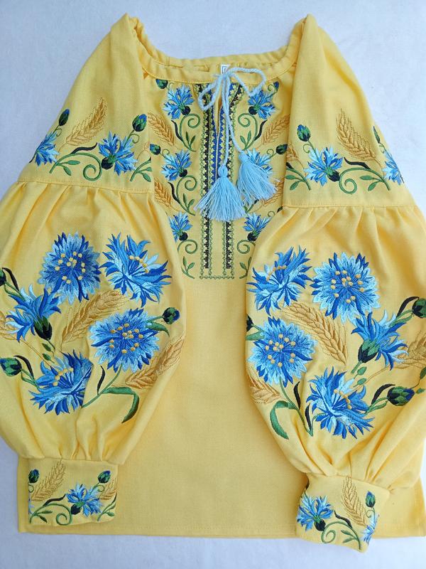 Яркая вышиванка для девочки желтая рубашка вышита в школу первый звонок школьная форма