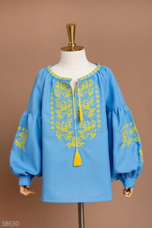 Вишиванка для дівчаток Колір: блакитний Матеріал: котон Країна виробник: Україна Розмірна сітка: 122-146 см Заміри: 122 - рукав 48 см (від горловини), ПО грудей 39 см, довжина 51 см. 128 - рукав 52 см (від горловини), ПО грудей 41 см, довжина 52 см. 134 - рукав 54 см (від горловини), ПО грудей 42 см, довжина 55 см. 140 - рукав 56 см (від горловини), ПО грудей 44 см, довжина 58 см. 146 - рукав 60 см (від горловини), ПО грудей 46 см, довжина 62 см.