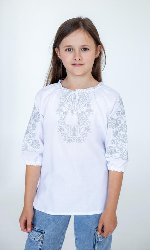Вышитая рубашка в школу вышиванка детская для девочек белая вышиванка с рукавом три четвер...