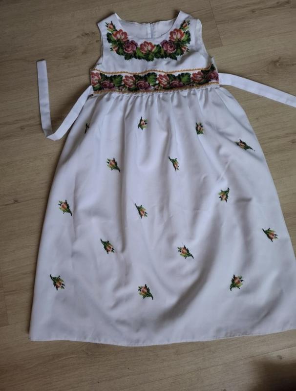 Вышитое платье на девочку одевали один раз, белоснежный цвет. На худи девочку не подойдет.