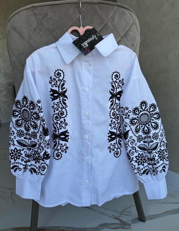 💝Рубашка в стиле вышиванки 🏷Размеры: 116-140 🪡Ткань: коттон поплин, пуговицы по всей длине, вышивка на рукавах 📐Замеры:длин./рукав от горловины/п********** 122-46/50/37 128-50/52/40 134-52/55/41 140-55/59/42 +-1 см арт ма