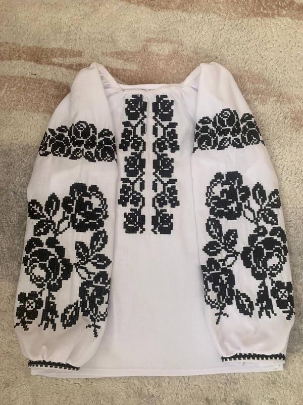 Вышитая рубашка белая с черной вышивкой блузка с вышитыми цветами