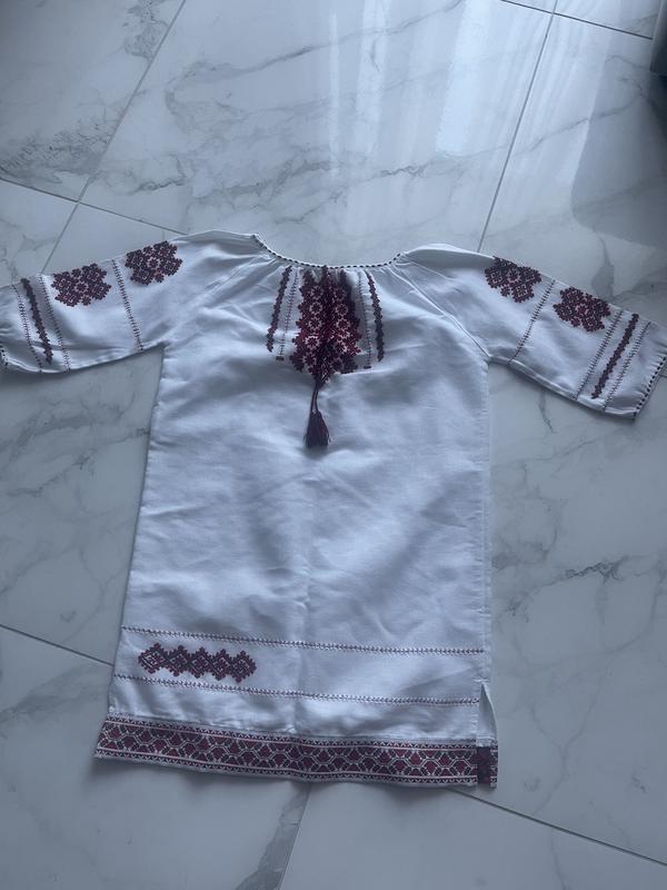Вишиванка для дівчинки від 8 до 10 років. Довжина може бути як нижче коліна так і вище коліна. Може прослугувати на декілька років. Стан ідеальний. Тканина натуральна. Вишивка. Заміри скину в особисті так як в описі не загружає фото.