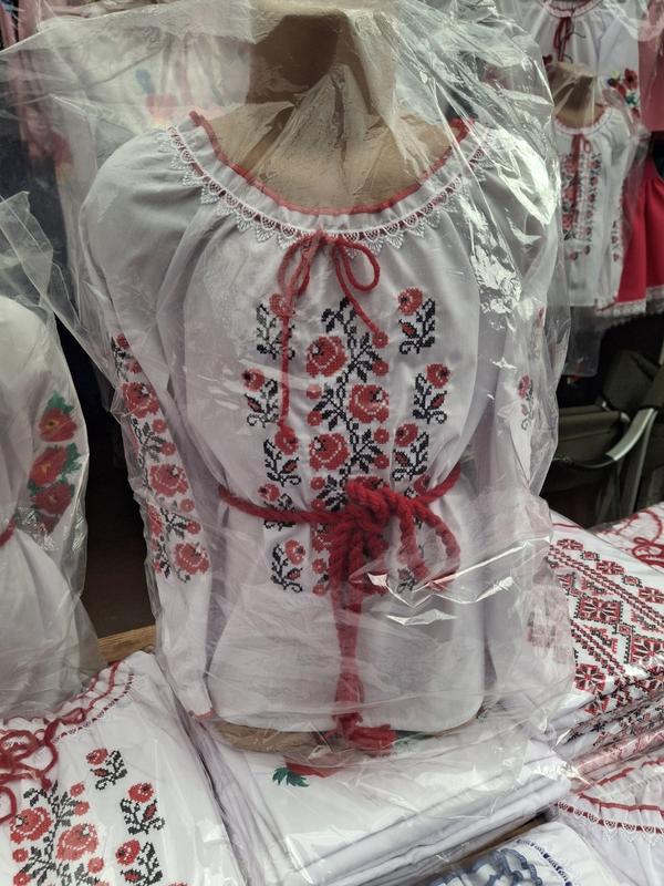 Ткань белая (рубашка) вишита окриливами нитками красивым орнаментом