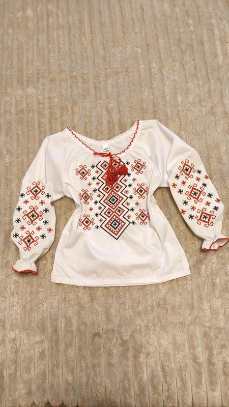 Размер 104 (на возраст 3-4 года). Материал приятный к телу, вышивка крестиком в традиционных красных и черных цветах, с кисточками спереди. Стан: нова Идеально подойдет на праздник, в садик или для тематических фото 🌸