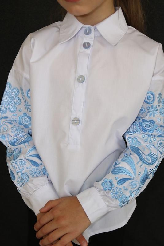 Вышиванка на рубашечной ткани с голубой вышивкой