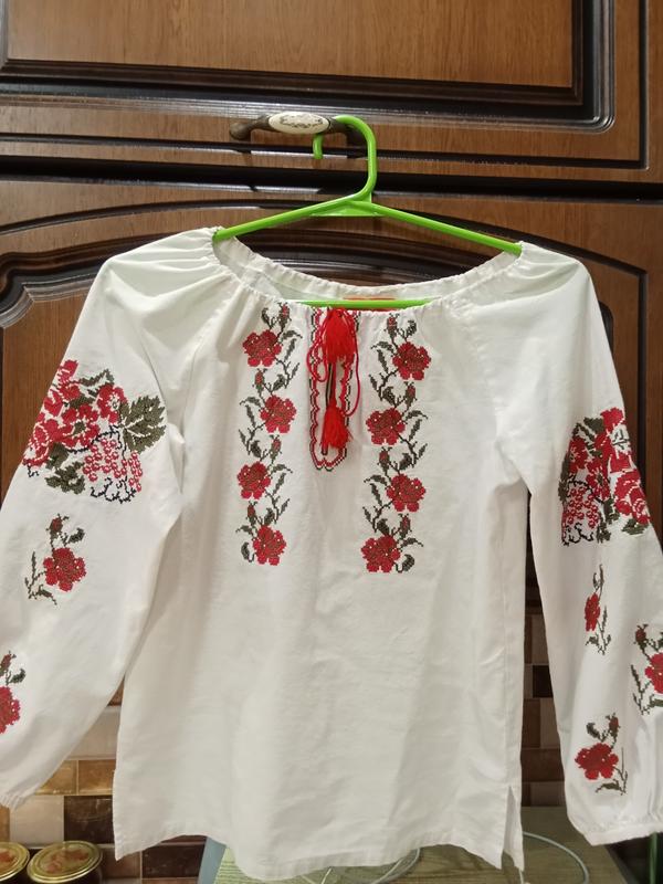 Вышиванка для девочки. Состояние - очень хороший. Безложений. Несколько раз одета в школу. Куплена в Антошке, бренд Piccolo. Очень качественная!