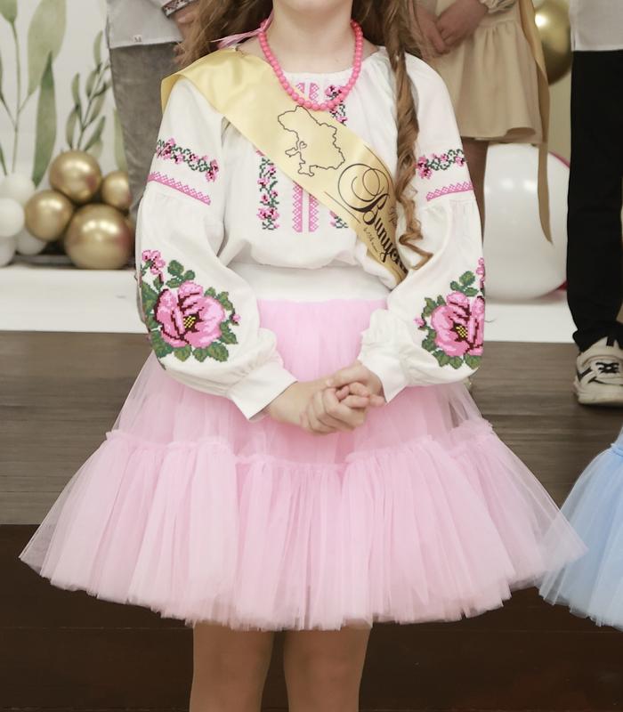 Гарна вишиванка.Ніжного рожевого кольору.Дуже пишна спідниця на резинці.Образ доповнюється обручем з квітів та буси.Одягали один раз.Все в ідеальному стані.Натуральна тканина.Будете задоволені
