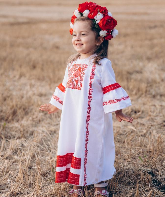 Сукня вишиванка традиційна для дівчинки. Виконана на основі домотканого полотна. Тканина гарної якості, дихаюча та практична до тіла Вишивка машина. Оздоблена натуральним мереживом.