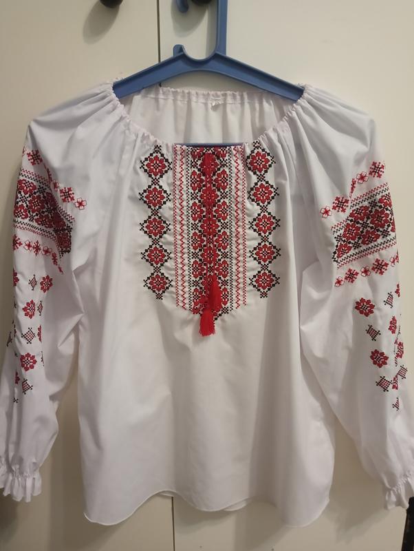 Хорошая вышиванка на девочку 10-12 лет. Вышивка красивая, яркая на шее регулируется (то есть можно стянуть шнуровочкой.