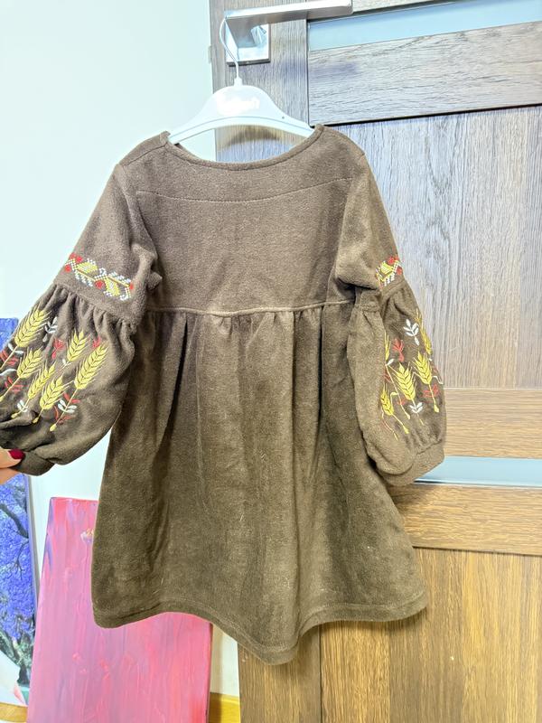 Тепла дитяча сукня-вишиванка в розмірі 104. Коричневого кольору