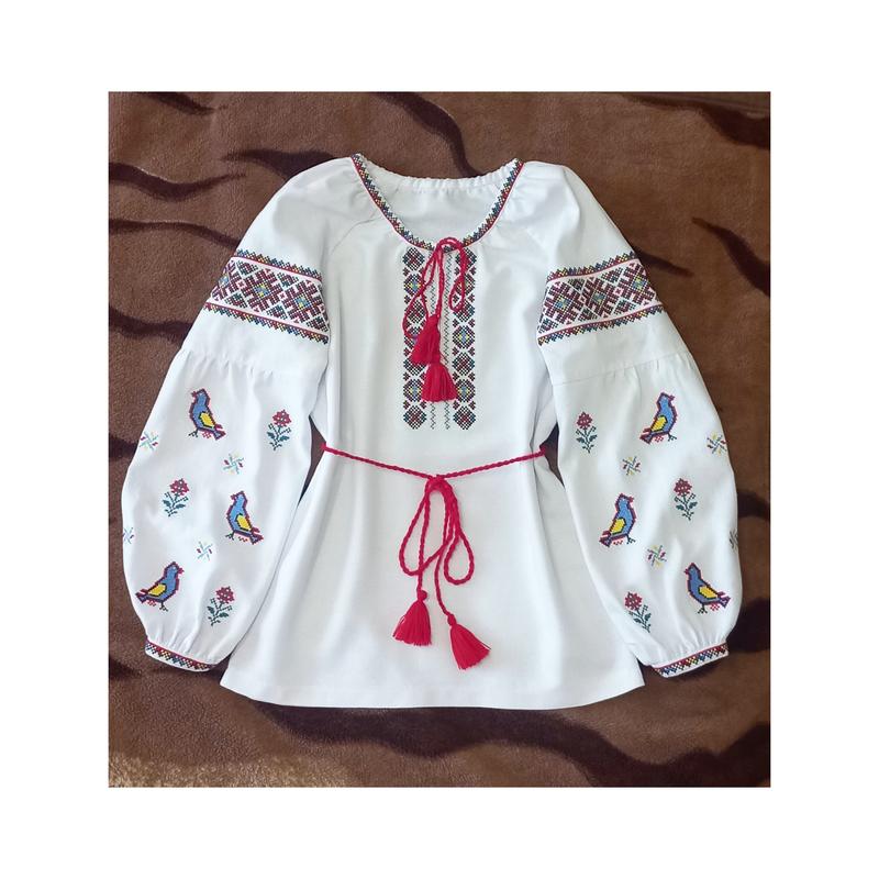 Вышита крестом на белом тонком полотне, приятном к телу. Замеры: Окружность груди - 78см Окружность бидер - 80см Длина рукава от шеи - 54см Длина рубашки - 56см По заказу выполняй в другом размере.
