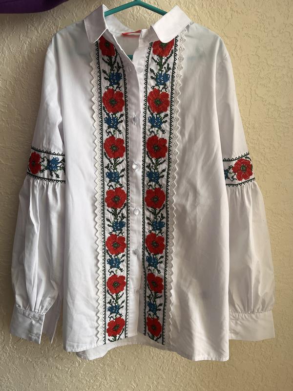 Вишиванка для дівчинки, практично нова. Одягала 1 раз так як не підійшов розмір. По бірці 140 см. Буде на 134.На худеньку дівчинку. Тканина поліестер.